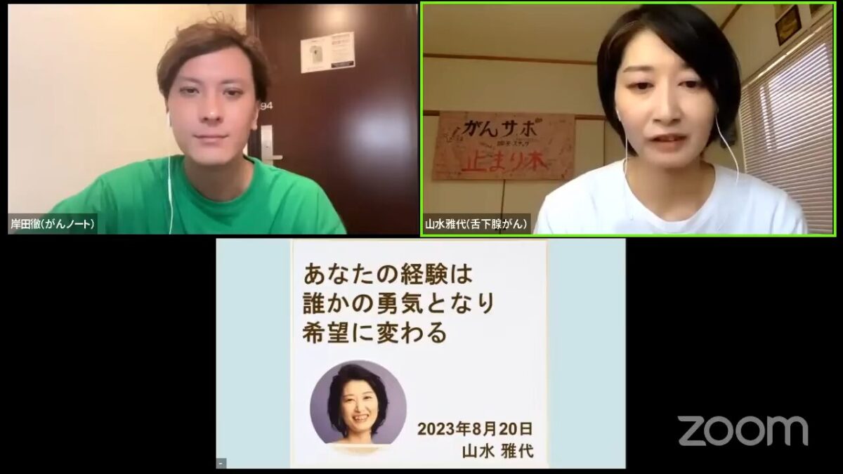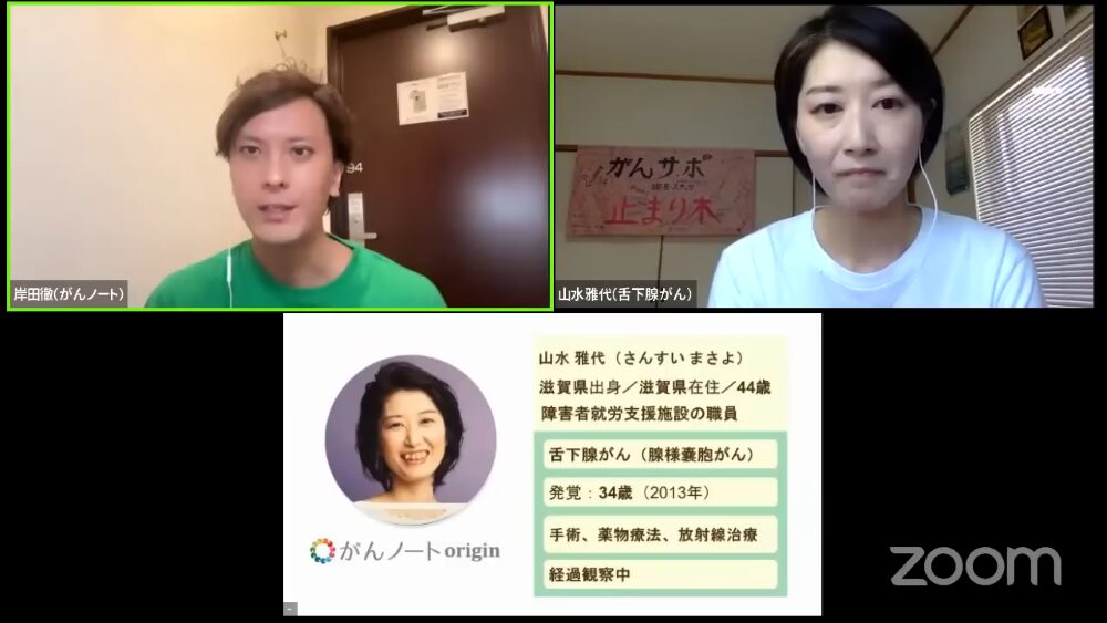 岸田 ありがとうございます。きっと本当に、皆さんの経験というのは、他の人の役に立ったりすると思いますし、その一つとして「がんノート」も存在していければいいなと思っています。長時間になりましたが、山水さん、今日はお時間いただきありがとうございました。