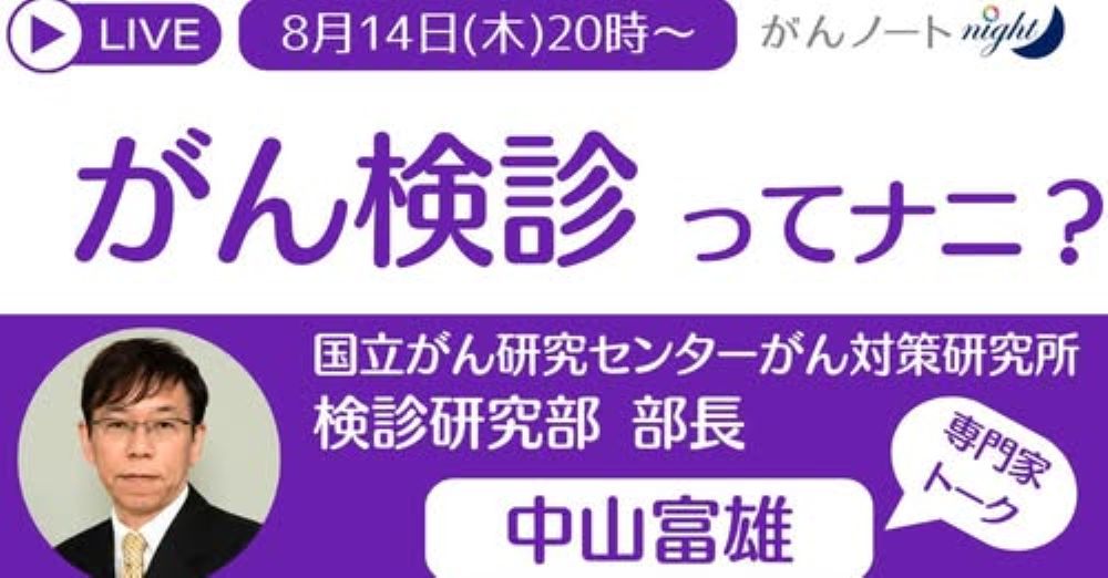 LIVE配信【がん検診ってナニ?】がんノートnight / 国立がん研究センター 検診研究部長 中山富雄先生