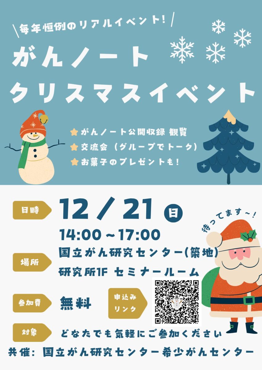 【参加者募集】12/21(日)がんノート年末恒例クリスマスイベント@国立がん研究センター